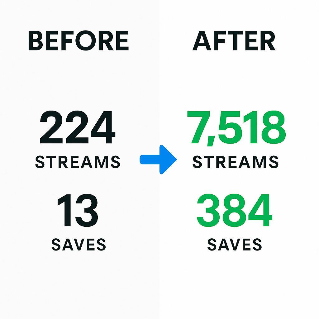 No one can guarantee editorial placements. Our method increases the chances of triggering algorithmic playlists (Discover Weekly, Release Radar) and improves your profile signals. We focus on what’s controllable.