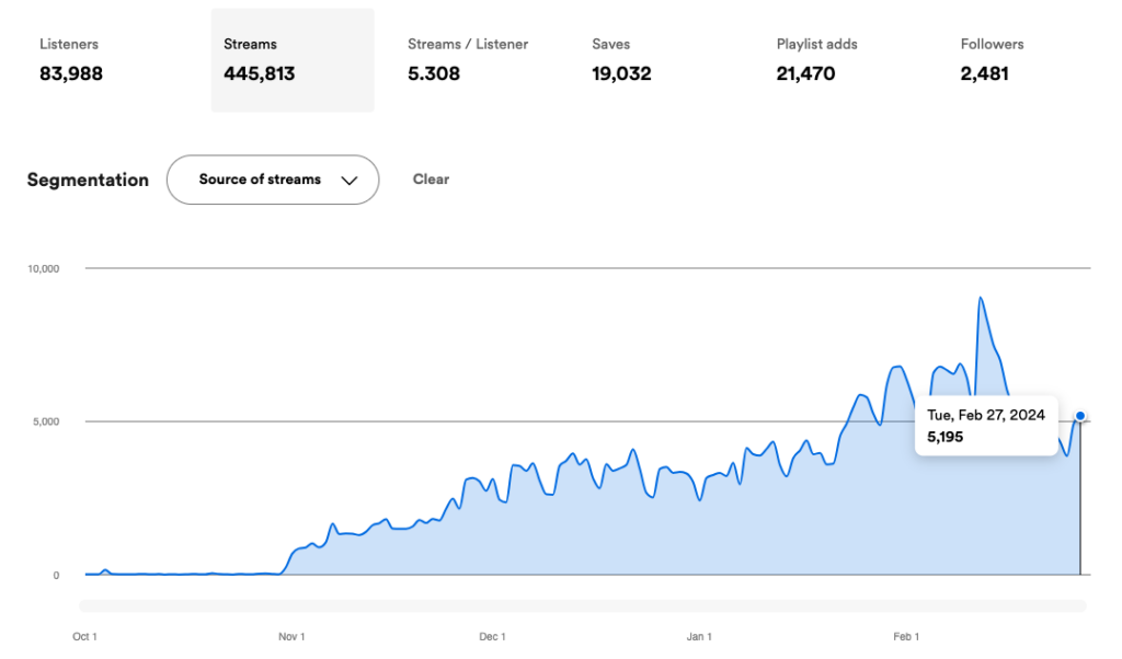 Estimated up to ~95,000 streams